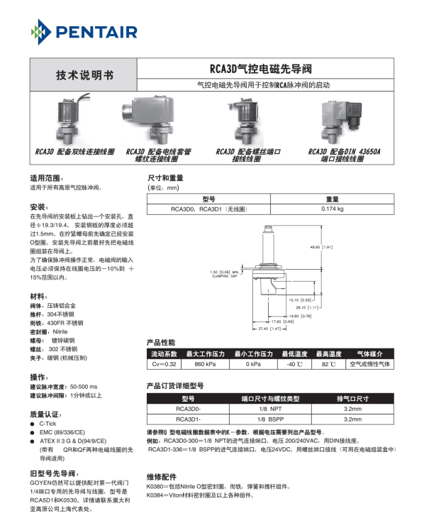 RCA3D气控电磁先导阀